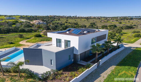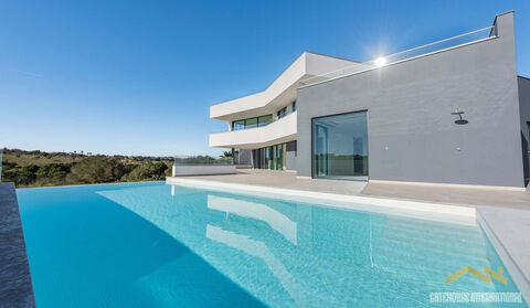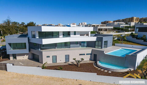 Luxury Brand New 5 Bed Sea View Villa in Lagos Algarve - this contemporary designed home built in 2025 measures a total of 677m2 including a basement level, 5 bedroom suites, heated swimming pool, and a great view to the rear with sea views. The villa is open-plan and very spacious, with naturally bright rooms with high-quality finishes. There is an entrance, very large open plan living and dining room with a kitchen and breakfast area also. All bedrooms have en-suite bathrooms and built-in wardrobes. The basement includes a garage for multiple vehicles, storage, a laundry room, and a 120m2 area that can be converted into a cinema room, gym, or games room. Other features include an elevator, a kitchen equipped with AEG appliances, an integrated sound system and a heated swimming pool. Technically, the house is equipped with air conditioning, underfloor heating, blackout blinds in the bedrooms, and regular blinds in the remaining rooms. Additionally, it features an irrigation system, a video intercom, three solar panels, and ten photovoltaic panels. Lagos is one of the most sought-after cities in the Algarve, not only for its golden sandy beaches and crystalline waters but also for the scenic beauty of its bay and its architectural legacy. Start your walk on Avenida dos Descobrimentos, the beautiful waterfront along the mouth of the Ribeira de Bensafrim, which will take you to some of the points of interest in Lagos that are well worth a visit. There is also the Marina where you can take a ferry/boat and see Ponta da Piedade which is one of the most beautiful coastal landscapes in the Algarve. A set of wonderful cliffs, caves and arches, rocks that seem to have been carved by hand and small coves and beaches, bordered by a sea of turquoise and emerald tones. Lagos is close to all amenities, public transport, shops, schools, etc., and is situated within a 1-hour drive from Faro international Airport.