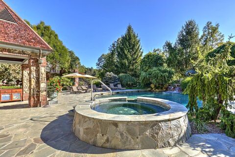 Kestrel Ridge: A home of extraordinary quality and space sits very privately on a hillside outside the village of Pottersville in Chester Township, enjoying the passive recreation benefits of neighboring Hacklebarney Park. A gated entry leads to a courtyard edged by a waterfall and maturely landscap