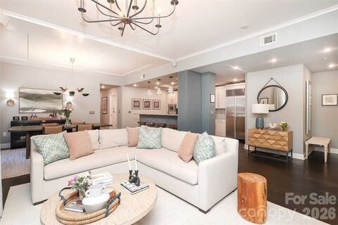 Welcome to this truly unique and turn-key unit in the elegant Fifth and Poplar Building. Previous owners combined two units to create this stunning 3-bedroom, 3-bath condo in the heart of Fourth Ward.