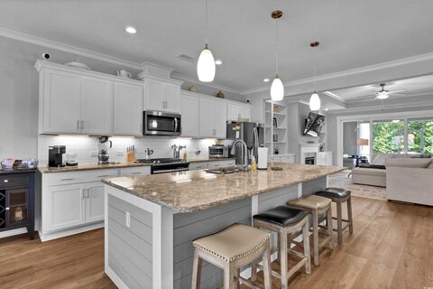 Step into effortless coastal living at 1584 Sand Harbor Circle, nestled in the highly desirable Saltwater Palms communityjust one block from the bridge to Ocean Isle Beach. This move-in ready Tidewater plan offers nearly 2,000 square feet of thoughtfully designed space and was built in 2019 with above-average construction quality and custom finishes throughout. Enjoy the ease of a spacious open floor plan, perfect for entertaining, featuring elegant hardwood flooring, a tray ceiling in the main living area, a cozy fireplace, and built-in cabinetry. The gourmet kitchen flows seamlessly into the living and dining areas, making everyday living and hosting a breeze. The primary suite is a private retreat with a large walk-in closet, dual vanities, and a beautifully tiled walk-in shower. Step outside to a screened-in porch with telescoping sliding doors and an additional patioan ideal space for enjoying the coastal breeze or entertaining outdoors. Saltwater Palms is perfectly located t