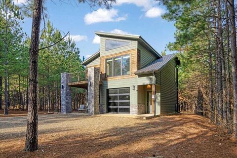 Welcome to The Loft, a one-of-a-kind cabin retreat nestled in the highly sought-after Sunrise Ridge neighborhood of Hochatown. Surrounded by towering pine trees in a peaceful, secluded setting, this stylish 1-bedroom, 2-bathroom cabin blends modern design with the natural beauty guests crave in Broken Bow.The two-level layout is thoughtfully designed for both relaxation and entertainment. The lower level features an oversized bonus room complete with a pool table, comfortable seating area with a sleeper sofa, and a full-size bathroomperfect for hosting guests or creating a fun game-room escape. Two stunning glass garage doors open wide, seamlessly connecting the interior to the outdoors and filling the space with fresh air and scenic views.Upstairs, the loft-style living space is bright and inviting with abundant natural light. The kitchen is a true showstopper, featuring custom cabinetry, a gas stove, stainless steel appliances, granite countertops, and a striking emerald green col