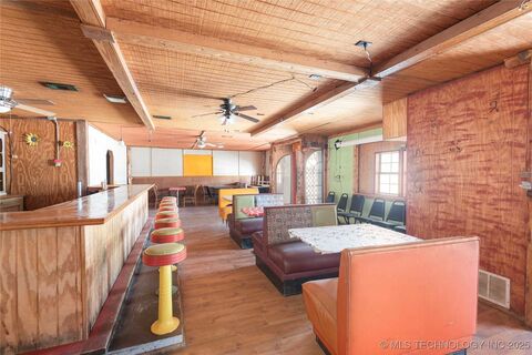 Prime Restaurant Location in Downtown Thackerville! Opportunity Awaits in a Vibrant, High-Traffic Area! Are you ready to own a restaurant? This free-standing 2000 sq ft building in the heart of downtown Thackerville is the perfect place to make your mark. With its large front porch and welcoming atmosphere, it has long been the go-to spot for locals and travelers alike to enjoy delicious food and great conversation. Spacious 2000 sq ft building with large dining area and bar. Open kitchen layout, perfect for an interactive dining experience. Large front porch, ideal for outdoor dining or social gatherings. Outside patio for an extended seating option. Dry storage room and work stations for efficient operations. Equipped with some restaurant supplies and kitchen equipment. Ready for new ownership to take it to the next level! This property offers endless possibilities for new owners looking to capitalize on an established location that customers already loved. If you are looking to bri