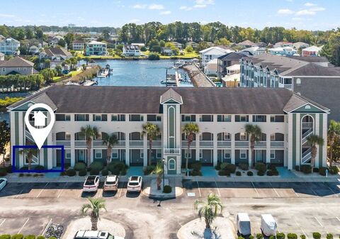 Welcome to WATERFRONT living at the popular community of Carolina Yacht Landing, nestled in the quaint town of Little River, SC. This stunning 3-bedroom,2-bathroom First-Floor End Unit offers a direct walkout to the Intracoastal Waterway! Imagine sitting on the screened porch with cool breezes flowing through as you watch the boats go by or walking right out the door to your own boat for a day on the water. This community is a boaters paradise with day docks, boat parking, or a slip of your own can be leased at a fraction of the cost of a marina. The home is bathed in natural light and the spacious kitchen has been updated with Quartz countertops and backsplash, cabinets, stainless appliances, and farmhouse sink. The primary bedroom offers a spectacular view, his and her closets and an en-suite bath. There is also direct access to the screened porch and this bedroom is separated from the other two guest bedrooms for privacy. This home is perfect for an investment property, prim