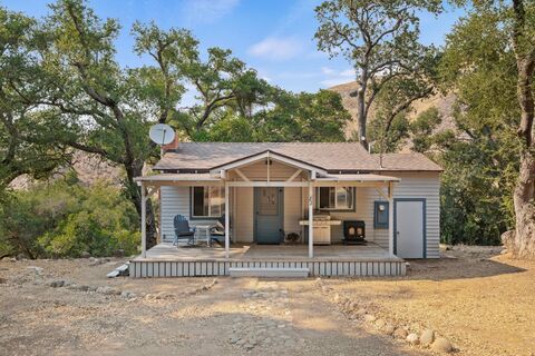 The Ideal Cozy Retreat Cabin Overlooking the Santa Ynez River Valley! Nestled on a hilltop beneath sweeping oak trees, this welcoming cabin provides a serene retreat overlooking the Santa Ynez River valley. The home features vaulted ceilings, a striking stone fireplace, warm wood flooring, and a mode