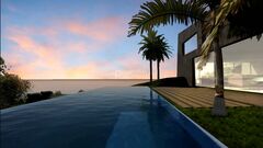 The main villa blends modern design with warm finishes, featuring an office with soaring ceilings, multiple entertaining areas, and spa-style amenities. The guest annexe offers privacy for extended family or visitors, while the basement leisure level delivers standout features including a cinema and games room, steam bath, and underwater views into the pool.
