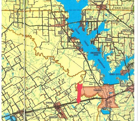 Recreational-cattle ranch with oak hardwood forest, wildlife and plenty of road frontage for any development. Part of the property overlooks the old Kerens city lake. On aerial photo, there is a separate 33 acres north of the railroad tract fronting Hwy 31easily developed homesites possible.
