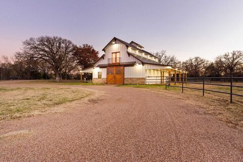 Welcome to your dream retreat just outside of DFW, only 35 minutes from Fort Worth and 55 minutes from Dallas. This expansive 52-ac property seamlessly blends nature with modern living, offering privacy, tranquility, and accessibility. Upon entering, you will cross Lockett Creek and, passing by a large fishing pond, youre greeted by majestic 300-year-old oak trees that frame the landscape. The charming 2,376 sqft farmhouse features 4 bedrooms and 3.5 baths, designed in a style that makes it a cozy sanctuary. With an additional 4,000 sqft of outdoor decking and porches, this home is perfect for relaxation and entertaining. Enjoy evenings by the grand outdoor stone fireplace, complete with a TV entertainment center. The expansive patio, nestled among the oak trees, is ideal for gatherings. A spacious 4-car cedar carport ensures your vehicles are well protected. This property is a haven for outdoor enthusiasts. You will find an escape right out your back door; fish in the pond, stroll th