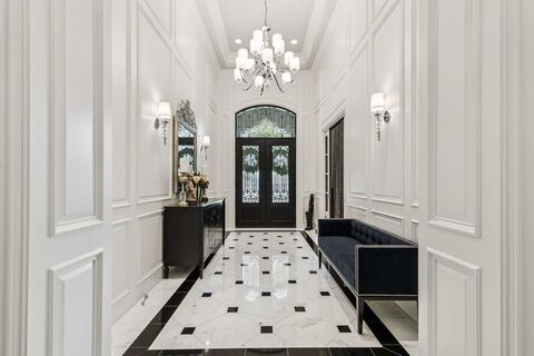 Welcome Home to this impeccable ONE Story, 8 CAR garage home in the Exclusive Guard Gated neighborhood of Quail Hollow, Westlake! Perfectly custom designed for elegant entertaining & everyday living, this home boasts European inspired stone exterior design, highest end of custom finishes, exquisite hardware, wood + marble flooring, custom designed draperies throughout. Welcome your guests through the impressive circular drive to a grand Foyer and Executive Study. The open plan Great rm area, boasts a warm Family rm w a beautiful cast stone fireplace & a wall of sliding Pella doors that brings the outside in. The spacious sunlit Dining rm also has sliding Pella doors to the outdoor liv & kitchen area. The Chef's Kitchen is a Dream, w top of the line appliances, custom designed stainless steel vent hood + huge island perfect for gathering. Adjoining the Kitchen you will find a fully equipped Prep Kitchen for all your entertaining needs. Enjoy the evening in the large Family Game rm comp