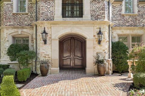 Nestled on a premier corner cul-de-sac lot spanning over half an acre, this extraordinary estate in the exclusive, gated Villages of Stonebriar Park combines timeless architecture, sophisticated updates, and resort-style amenities. The homes interiors are designed for both grand entertaining and comfortable living. A formal dining room with butlers pantry, icemaker, and modern chandelier provides the perfect setting for gatherings, while the handsome study boasts extensive built-ins and a concealed hidden room. A versatile bonus room offers flexibility for an exercise space, nursery, or private retreat. At the heart of the residence lies the expansive chefs kitchen, a showcase of style and function with white cabinetry, quartz countertops, a Sub-Zero refrigerator, a Dacor double oven & 6-burner gas cooktop, a generous island, and a wall of windows overlooking the pool. An intimate breakfast nook with a stone fireplace creates a warm and inviting atmosphere. The soaring vaulted ceili