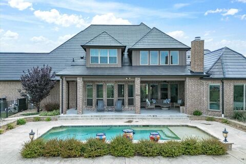 Extraordinary European Country inspired home in one of the most desirable additions in Aledo -- La Madera Estates! Superbly built with perfect blend of sophisticated yet livable style and appointed from head-to-toe with gorgeous finishes and state-of-the-art amenities including TESLA Powerwall Backup Power Grid plus Class 4 rated TESLA Solar Roof Tiles ultra energy efficient and arguably the most impressive feature of the home! Bright and open design chef's kitchen with SS commercial grade appliances, 6 burner cooktop and double ovens. The kitchen opens to impressive great room with high ceilings, impressive floor to ceiling stone fireplace, gleaming hardwood floors and great windows overlooking it's incredible resort-like backyard! Fabulous outdoor pool cabana with built-in BBQ grill and outdoor kitchen and living space overlooking a stunningly sleek pool with Pentair LED color lighting, pristine landscaping and gorgeous views of serene lake and pretty estate properties all around!