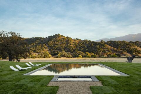 An enchanting 103+/- acre estate in prestigious Happy Canyon, Santa Ynez, crowned by a residence inspired by classic English manors. Completed in 2022 and reimagined by designer Jane Hallworth, the interiors blend heritage and contemporary elegance. A zero-edge pool overlooks manicured lawns and oak-