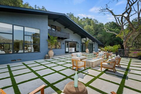 MISSION CANYON HIDEAWAY-Beautiful remodeled 4BR/3BA mid-century home on 1+- wooded acre offers classic lines & spellbinding mountain views. Walls of glass and volume ceilings breathe light into every space and capture the spectacular views. Reimagined farmhouse kitchen w/center island, professional s