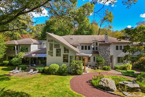 Opportunity to acquire an exceptional 6.5 acre Greenwich country compound set amongst very high-end homes in a private, gated association. There are stunning vistas & a bucolic setting w/manicured & mature plantings plus expansive lawns for horses. Amenities include pool & spa, pool house, tennis & basketball courts, spaces for vegetable & flower gardens, carriage house or art studio & office. Masterful blend of timeless architecture with well sited windows that seamlessly integrate the natural landscape. This 9200 square foot home offers high ceilings & spacious formal & informal rooms, which accommodate both intimate family gatherings & grand parties. Enter into a double height grand foyer w/curved metal railed staircase & see marble & wood floors, great wall space for displaying art. First floor offers a large living room with floor to ceiling stone fireplace & a greenhouse area for enjoying the view and sun, formal dining room, first floor primary suite with adjacent office, spacio