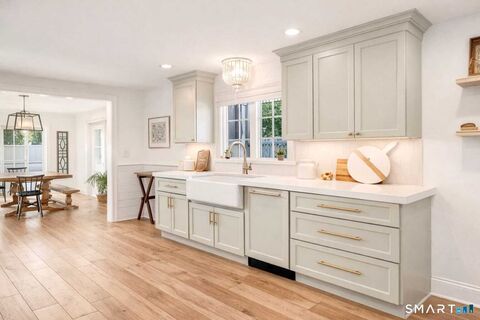 Discover exceptional coastal living in this beautifully rebuilt 4-bedroom Colonial located in Milford's desirable Morningside Beach community. Steps to Long Island Sound and not in a flood zone, this home offers the ideal blend of seaside charm and peace of mind. Completely renovated inside and out in 2019, this warm and welcoming home features thoughtful design, quality craftsmanship, and modern finishes throughout. The sun-filled main level is perfect for everyday living and entertaining. The gourmet kitchen anchors the home with quartz countertops, a Viking gas range, Monogram refrigerator, walk-in pantry, and inviting breakfast nook. The formal dining room opens to the outdoor living area, creating the ideal flow for gatherings. A spacious family room offers a comfortable retreat.(Samsung Frame TV conveys) A large laundry room with storage and a utility sink adds everyday convenience. Upstairs, the vaulted primary suite serves as a private oasis with a spa-inspired bathroom featuri