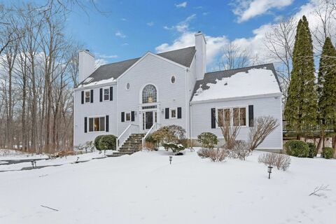 Welcome to 6 Morganti Ct.! Fantastic center-entrance Colonial, perfectly sited on a professionally landscaped, level acre tucked at the end of a quaint South Ridgefield cul-de-sac. This charming residence offers 4 bedrooms, 4 full and 1 half baths & 4,616 sq. ft. of beautifully proportioned living space w/soaring 9+ ft. ceilings, loads of natural light & an exceptionally functional floor plan. Guests are greeted by a gracious two-story entry with seamless flow to formal living room w/FP, dining room & crisp white kitchen w/granite countertops, stainless steel appliances, and breakfast nook with cozy fireplace. Adjacent, an impressive great room w/dramatic two-story windows, vaulted ceilings, stone FP, & sliders leading to an expansive wrap-around deck -- perfect for entertaining and everyday living. Upstairs, the serene primary suite features a spa-like full bath with soaking tub and double walk-in closets. Three additional bedrooms (one w/en-suite full bath), shared hallway bath and c