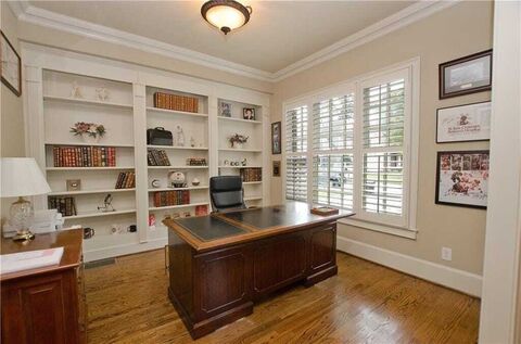 Location, Location, Location!Discover timeless Sophistication in this exceptional Monte Hewett-built brick home offers timeless elegance, exceptional craftsmanship, and thoughtful upgrades throughout. Ideally located with easy access to Truist Park, The Battery, Home Depot HQ, major highways, shopping, and diningthis home truly has it all.This stately residence exudes craftmanship and style across all three levels, with rich hardwood floors, soaring ceilings, custom millwork. A welcoming two-story foyer leads to a spacious, open floor plan designed for refined living and effortless entertaining. A formal dining room with a butlers pantry offers the ideal setting for elegant dinner parties, while a private home office with custom built-ins bookcases provides both functionality and charm perfect for work from home professionals.At the heart of the home is a chefs dream kitchen featuring stainless steel appliances, double ovens, stained cabinetry, granite countertops, a large cen