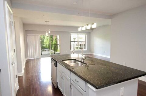 One River Place is a premier gated community, close to a variety of restaurants, shopping centers, Publix, Truist Park-The Battery, Top rated schools, Cumberland area and the Sandy Springs Performing Arts Center. The community is beautifully landscaped on 33 acres of surrounded by woodland forest and Chattahoochee River.With easy access to major highways, this community offers a range of luxury amenities that are second to none featuring guarded, gated entrance, 24 hour security, concierge service, including two saltwater pools (one heated), a dog park, a pond, expansive green spaces, nature trails, and a clubhouse featuring a spa room, a 24/7 fitness center, a catering kitchen, and a pavilion.Monthly dues cover water, sewer, termite control, trash, and recycling. HOA Fee spilt Between Association $427.00 - Master association $412.00. (You pay Internet and Power) This unit offers an open floor plan and a rare double sized covered balcony with great view of courtyard. Open kitche