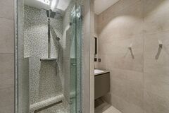 Designed to accommodate up to 10 guests in comfort, the property features a master bedroom with an en-suite bathroom, a double bedroom with a single bed, and an expansive family room for up to 6 guests, also with an en-suite bathroom. Natural light floods the living room, enhanced by a fully glazed gable that seamlessly connects the indoors with the outdoors. The open-plan kitchen and dining area create the perfect space for sharing moments with loved ones.