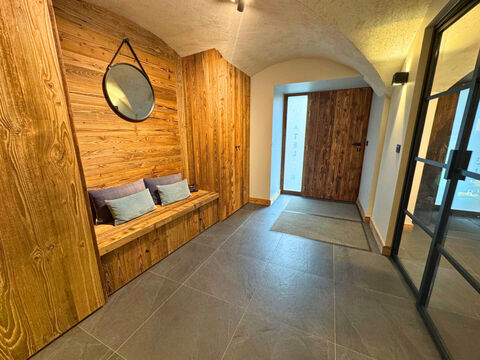 Spanning four refined levels, this exceptional residence blends traditional alpine character with understated modern luxury. The bright and welcoming living space is centred around a fireplace, ideal for cosy winter evenings with panoramic mountain views. The sleek open-plan kitchen and elegant dining area flow seamlessly onto a generous terrace—perfect for apres-ski moments or summer gatherings.