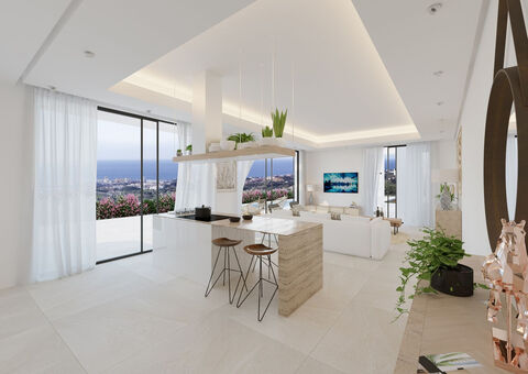 Exclusive development of four bedroom villas boasting spectacular views, contemporary designs and the latest home technology. These villas have exceptional views of the mountains and the sea. The villa have been designed to make the most of the interior living areas, with an open plan living room dining room and kitchen that have over-sized windows that open to seamlessly integrate the sunny terraces with the interior, making it a perfect place to relax and enjoy the views. On the floor you also find a guest en-suite bedroom and separate toilet. On the first floor you have two guest en-suite bedrooms and a large master suite with access to a private terrace. The villas either have solariums from which you can enjoy panoramic views or basements that are bespoke. Set within a gated community with stunning views, large private swimming pools and private parking whilst just being a 5 minute drive to the beach, 10 minutes to the closest golf course and just 20 minutes to the airport. All of these factors make these villas an amazing home for either holidays or a permanent residence.