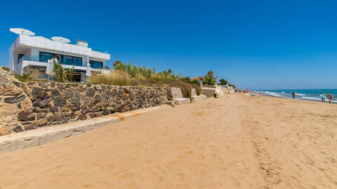 Amazing beachfront property located right on the Costabella beach, surrounded by beautiful golden sand. It's a newly built home crafted to the highest standards by renowned Marbella architect Jose Carlos Moya, boasting modern elegance and sophistication. With 6 bedrooms and 5 bathrooms, it offers plenty of space for a comfortable lifestyle. Facing southwest, the property treats its residents to breathtaking sea views and stunning sunsets. Its design incorporates wood, glass, stone, and concrete, creating a remarkable family residence. On the ground floor, you'll find a spacious entrance hall leading to a large living room, dining area, and a fully equipped open-plan kitchen which connects to a hallway with access to the driveway. Sliding doors from both the kitchen and living room open onto a decked terrace and heated swimming pool, with a path leading directly to the beach through sand dunes. The terrace is surrounded by a beautifully landscaped private dune, providing complete privacy for relaxation and dining. Additionally, there's a guest bedroom with a fitted wardrobe and a bathroom on this level. Upstairs, the first floor features the master bedroom with two wardrobes, a master bathroom, and access to a terrace. There are also two more bedrooms with access to the terrace and a shared bathroom. The rooftop boasts an open terrace with fitness equipment, a pergola, and panoramic views. The basement level includes two more bedrooms with natural light, fitted wardrobes, a bathroom, and a spa area with a jacuzzi, steam bath, sauna, and showers. There are also storage rooms and a utility room. An elevator and oak staircase with glass railings provide access to each floor.