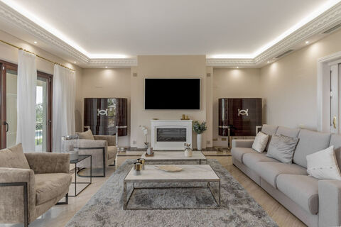 Stunning Renovated Villa with Sea Views, Heated Pool, and Guest Apartments in Tranquil Paraiso Alto, Benahavis Set within the prestigious enclave of Paraiso Alto in Benahavis, this expansive 11-bedroom, 12-bathroom residence offers a rare blend of space, privacy, and refined Mediterranean living. Fully renovated in 2019 and sold turnkey furnished, this 817 m2 villa on a 2,000 m2 plot provides an unparalleled family retreat with exceptional indoor and outdoor living spaces. Originally built in 2002 and thoughtfully modernized, the villa harmonizes traditional Andalusian architecture with contemporary comfort. The design retains classic elements like a central tower and elegant terraces, while incorporating large-scale windows, refined finishes, and modern infrastructure including underfloor heating and air conditioning throughout. Spanning three levels, the villa is organized for comfort and flow. A grand staircase and private elevator connect each floor. The entrance hall opens to sea views, leading to a large lounge with terrace access. The central kitchen, located in the property's signature round tower, is bathed in natural light from surrounding windows—offering a striking space for everyday living and entertaining. The main and upper levels host six spacious en-suite bedrooms, each offering privacy and comfort. The upper bedrooms open directly onto a wraparound terrace that showcases panoramic views over the Mediterranean coastline and lush greenery. The lower level is designed to offer full independence to both guests and staff. A self-contained guest apartment features two bedrooms, two bathrooms, a lounge, and a kitchen. Additional rooms on this level include a staff apartment and two further bedrooms—perfect for extended family, visitors, or live-in service. Whether for family life or hosting, the villa offers multiple zones for entertainment. A cozy upper-level lounge or office in the tower provides a quiet retreat, while several terraces and garden spaces allow for stylish outdoor dining, lounging, and gatherings throughout the year. A standout feature is the private heated pool set within a manicured garden—ideal for year-round enjoyment. With generous sunbathing space and a peaceful ambiance, this area echoes the leisure experience of a boutique Mediterranean resort. Outdoor Living Spaces The villa offers 102 m2 of terraces plus expansive lawns and a mature private garden. With panoramic sea views, covered al fresco dining areas, and wraparound balconies, the outdoor spaces are tailored for both relaxation and entertaining. The gated entrance opens into a spacious driveway with secure parking for up to five vehicles, including a private garage. Storage rooms, a laundry area, and a machine room on the lower level enhance practicality for full-time residents or holiday use. Located in one of Benahavis' most peaceful and sought-after residential areas, the property enjoys a quiet, secure environment with limited through traffic. The home is completely private, set behind walls and surrounded by greenery, yet close enough to premium amenities. South-facing and elevated, the property enjoys breathtaking panoramic views stretching across the Mediterranean Sea and surrounding hills. Whether enjoying sunrise from the bedroom terrace or sunset from the poolside lounge, the setting is truly immersive. Paraiso Alto in Benahavis is renowned for its serenity, security, and proximity to top Costa del Sol attractions. This villa places residents just minutes from the championship golf courses of El Paraiso Golf Club, Atalaya Golf, and the acclaimed Marbella Club Golf Resort. Fine dining is readily accessible in Benahavis village—known as the "dining room of the Costa del Sol"—as well as in nearby Marbella and Puerto Banus. Beaches and beach clubs are just a short drive away, including Playa del Saladillo and Playa San Pedro, offering golden sands and waterfront dining. For families, proximity to top international schools such as Colegio Atalaya and Aloha College adds long-term practicality. Everyday conveniences such as supermarkets, clinics, and cafes are within easy reach in nearby Guadalmina and Estepona. With excellent connectivity via the AP-7 motorway, residents can reach Marbella in 15 minutes, Estepona in 20, and Malaga Airport in under 50 minutes. Hiking and cycling trails in the nearby mountains offer year-round outdoor activities, enhancing the active Mediterranean lifestyle.