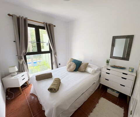 Beautifully Presented Semi-Detached Townhouse with Private Garden and Rooftop Solarium | Casares Costa This stylish semi-detached townhouse enjoys one of the best positions in this private gated community, offering privacy, all-day sun, and easy access to the main swimming pool and allocated parking. Set in a peaceful gated community surrounded by landscaped gardens and two inviting swimming pools, it's the perfect setting for relaxed coastal living, yet is just 10 minutes walk from a beautiful sandy beach. Step inside to a bright and welcoming living space with a dedicated dining area and a newly fitted kitchen that blends style and practicality. The layout is thoughtfully arranged over three floors, with two double bedrooms and a family bathroom on the first level, while the top floor is home to a spacious master suite featuring fitted wardrobes and an en-suite bathroom with walk-in shower. The home is turnkey and offered fully furnished, complete with hot and cold air conditioning throughout. A generous private garden and BBQ terrace offer the ideal spot to dine outdoors or unwind with family and friends. Upstairs, a sunny roof top terrace provides open views of the surrounding greenery and even a glimpse of the sea. Perfectly located between Estepona and La Duquesa/Sotogrande, with the beach just moments away and Sabinillas and Duquesa Marina only a 3-minute drive from the property. Golf lovers will appreciate the extremely close proximity to Dona Julia and the prestigious Finca Cortesin golf resort & Hotel, with Marbella, Gibraltar, and Malaga Airport each within easy reach. Whether you're looking for a lock-up-and-leave holiday home, a permanent residence, or an investment with rental potential, this home delivers on every front. Early viewing is highly recommended!