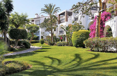 Beautiful Beachfront Apartment with South Facing Views | New Golden Mile, Estepona A RARE OPPORTUNITY TO ACQUIRE A PROPERTY WITH A TRANSFERABLE SHORT TERM RENTAL LICENSE This superb garden apartment is set within one of the most sought after beachfront developments on Estepona's New Golden Mile, positioned just 140 metres from the shoreline and perfectly suited for a relaxed coastal lifestyle where everything is within easy reach. The location is truly exceptional. A choice of quality restaurants and a stylish beach club are only moments away, while a boutique beachfront shopping centre with several dining options and one of the world's most iconic beach clubs is an easy five to ten minute walk away along the beach . Puerto Banus and Marbella are just to the east, offering world class leisure, dining and shopping within a short drive. The apartment enjoys a bright south facing position with views across the tropical gardens and the impressive free form swimming pool. Inside, the home is finished with cream marble flooring, a spacious fully fitted bathroom, two generous bedrooms with newly installed wardrobes and a brand new air conditioning system. The layout is comfortable, inviting and ideal for both permanent living and holidays - the owner has a short term rental license and this license is transferable to a new owner! The gated development offers complete security with twenty four hour CCTV, beautifully maintained gardens, a large swimming pool with its own community summer restaurant, a paddle tennis court, a children's play area and direct access to a very private beach. The property also benefits from communal exterior and communal underground parking, a private storeroom, direct access to the pool area and a valid rental licence, giving it excellent rental potential. A wonderful opportunity to acquire a well located apartment in one of the New Golden Mile's most desirable beachfront communities.
