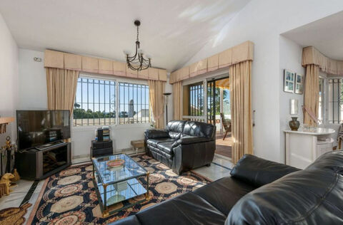 Great value Detached Villa with sea and golf views | Calahonda, Mijas Costa New to the market and rarely available beautifully positioned 3-bedroom villa, tucked away within an exclusive enclave of just 10 homes, offering peace, privacy, and panoramic views over the Mediterranean and the lush green fairways of the neighbouring golf course. Located in one of Calahonda's most sought-after residential zones, the property is spread across two levels and designed for effortless coastal living. The main floor features a bright living room with a working gas fireplace, a dedicated dining area, a fully fitted kitchen, and a guest WC. Step out onto the generous southwest-facing terrace, the perfect blend of sun-soaked open space and shaded area for alfresco dining or evening drinks. Downstairs, the garden level hosts the spacious master suite with ensuite bathroom, two guest bedrooms with a shared bath, and a versatile bonus room, currently a laundry/storage space but easily converted into a fourth bedroom, office, or gym. There's also a separate workshop/storage room and a solar-powered water heating system for added efficiency. The villa opens out to a private, intimate garden, ideal for relaxing in the sun or enjoying quiet outdoor moments. This is a standout opportunity in a well-established, tranquil setting just minutes from golf, beaches, shops, and restaurants. A must-see for buyers looking for space, charm, and stunning views in a prime location.