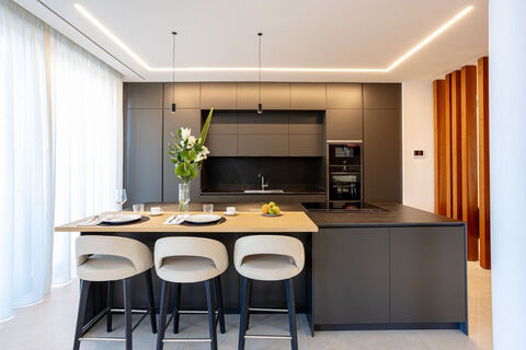 This newly built contemporary villa is set within a quiet residential enclave in Paraiso Alto, next to El Paraiso Golf Club on the New Golden Mile, offering an ideal balance of privacy, comfort and Mediterranean lifestyle. Designed with clean architectural lines and generous glazing, the home is filled with natural light and finished to a high standard, combining modern technology with refined materials and elegant decorative details. The main level features bright open-plan living and dining areas that flow seamlessly towards the garden and pool, alongside a sleek modern kitchen designed for both everyday living and entertaining. Three spacious en-suite bedrooms are also located on this floor, providing comfortable accommodation for family and guests. The upper level is dedicated to the principal suite, complete with an open-style bathroom, dressing room and a private terrace overlooking the garden and horizon. The lower level benefits from natural light and includes a garage for two vehicles together with a versatile open space that can be adapted as a cinema room, gym, games room, wine cellar or additional bedrooms. Outdoors, the large flat plot hosts manicured gardens, a generous swimming pool and expansive terraces with dedicated chill-out areas, creating multiple spaces to relax and entertain throughout the year. South facing and equipped with underfloor heating, aerothermal climate control and advanced home automation, the property is ready to move into and suited to year-round living. Its location offers easy access to renowned golf courses, beaches, international schools, restaurants and everyday amenities, while Marbella, Puerto Banus and Estepona are all within a short drive, making it an excellent choice for both permanent residence and extended stays on the Costa del Sol.