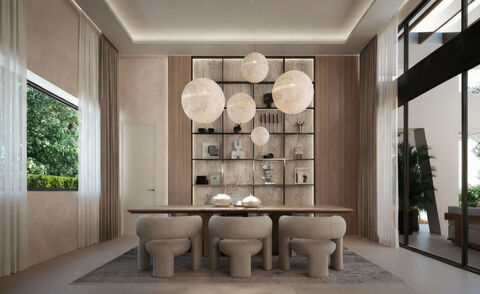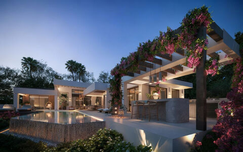 This elegant contemporary villa has been designed on a single level to fully embrace relaxed Mediterranean living, combining clean architectural lines with natural materials that create a refined yet welcoming atmosphere. Extensive use of wood finishes, soft neutral tones and floor-to-ceiling glazing enhances the sense of space and light, while creating a seamless connection between the interior and the surrounding gardens. The layout centres around generous open-plan living and dining areas that flow effortlessly onto expansive terraces and poolside chill-out zones. This fluid design encourages indoor-outdoor living and makes the home equally suited to everyday family life and entertaining on a larger scale. A substantial basement level adds exceptional versatility, offering the opportunity to create a cinema room, gym, games area or additional living accommodation tailored to individual lifestyle needs. The main sleeping quarters are thoughtfully arranged to provide privacy and tranquillity, with all bedrooms enjoying direct access to outdoor areas and landscaped gardens. Contemporary bathrooms feature high-quality finishes and fittings, delivering a calm, spa-like ambience. Additional accommodation within the home allows guests to be hosted comfortably without compromising privacy. Outdoor living spaces form the heart of the property, with expansive terraces, shaded lounge areas, landscaped gardens and a swimming pool designed for year-round enjoyment. A dedicated chill-out area with a winter fire extends the usability of the outdoor spaces beyond the summer months, creating an inviting setting for relaxed evenings and social gatherings. Comfort and efficiency are enhanced through advanced home technologies, including aerothermal climate systems, LED lighting and full home automation, ensuring a modern, sustainable and easy-to-manage living environment. An underground garage provides secure parking and discreet access. Set within the prestigious Golf Valley of Nueva Andalucia, the location offers an exceptional lifestyle surrounded by some of Marbella's most renowned golf courses, including Los Naranjos, Las Brisas, Aloha Golf and La Quinta. International schools, fine dining, shopping and everyday amenities are all within a short drive, while Puerto Banus, sandy beaches and Marbella's vibrant social scene are easily accessible, making this an ideal choice for both year-round living and a refined second residence.