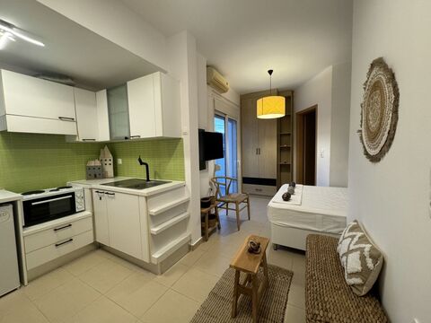 A stone's throw from the famous beach of Rethymno and its bright, blue waters, this one-bedroom apartment is found at the perfect location.