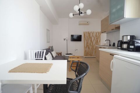 Nestled in close proximity to the famous Rethymno beach and its bright, blue waters, this one-bedroom apartment boasts an ideal location.