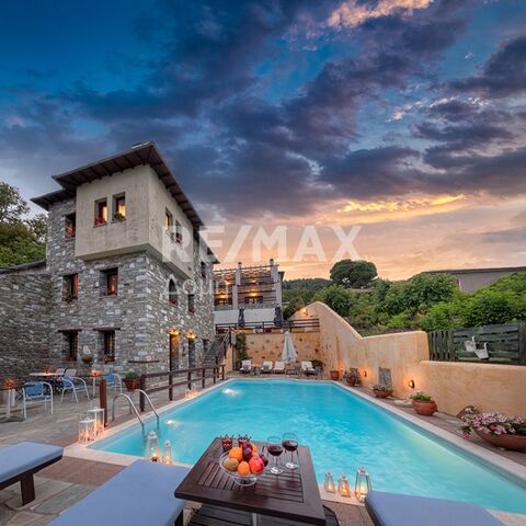 Exclusively available for SALE in the heart of their mythical mountain Centauro, in the settlement of Kalamaki - Propan, the luxurious and high standard "Petradi" hotel which has been operating since 2009 with excellent reviews. With strong elements of traditional Pelioreite architecture, Peradi Hotel is located in a unique spot of beauty, where the green mountain of the Centaurs blends with the blue-green of the Aegean sea. This hotel complex is built on several levels offering a panoramic view of the Aegean blue. it has 13 luxurious accommodation spaces (double rooms, studio, family, suite, maisonette) which can accommodate from 2 to 8 people. Each space has energy-efficient frames with double glazing for thermal and sound insulation, tile and wood floors, a bathroom with all modern amenities, while most also have a fireplace. The heating in all areas of the complex is carried out by an oil boiler. All apartments have access to the outdoor swimming pool located in the green garden. Also in a separate building from the apartments there is the reception area, cellar, large warehouse, staff rooms, kitchen, boiler room area as well as a bathroom for the disabled. it also has a closed two-seater garage, while the outside area can accommodate all the guests' cars.
