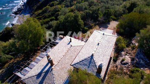 Exclusively available through our office, this unique stone-built detached house of 145 sq.m. is located on a 5,000 sq.m. plot in the area of Mourtias, Promyri, in the wider region of South Pelion. Perched on the lush mountainside, just steps away from the beach, the property offers a rare combination of privacy, panoramic sea views, and direct beach access.
