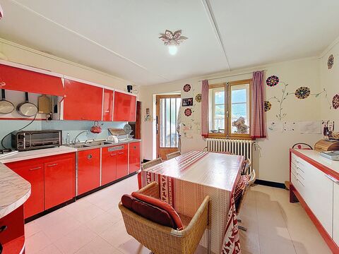 This charming semi-detached chalet is in a lovely spot outside Seytoux, with lovely views of the mountains and woodlands. There is a garden including a new carport for two vehicles with a large storage area underneath. There is space also for three or four further vehicles to park, uncovered. The house itself has a large basement with a cellar/boiler room which has access from the outside or from the ground floor. On the ground floor there is a kitchen, a living room with a fireplace, four bedrooms, and the bathroom.On the top floor there is a beautiful, unconverted barn/attic space which offers great potential.