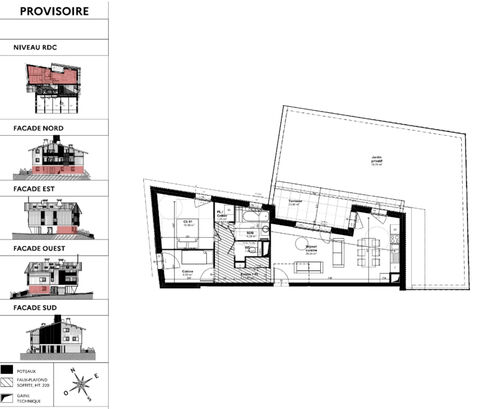 Apartment 001 is on the ground floor with a surface area of 62m2. It includes an open plan living room (29m2) with fully fitted and equipped kitchenette and access to the terrace (14m2) and private garden (78m2), a bedroom, "coin cabinet", bathroom and a separate WC. 001 is an ideal apartment for people with reduced mobility.