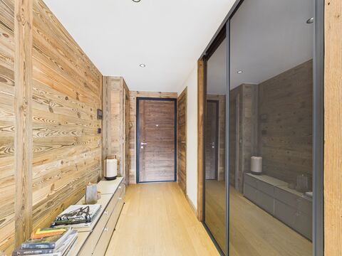 The apartment is beautifully finished throughout with stunning woodwork, and luxurious kitchen and bathroom fittings. The living room is bright thanks to the large windows and high ceiling. The property is sold with two ski lockers and a parking space with an electric car hook up point. The building has a spa and gym complex and is very central, with skiiing and shops on the doorstep!
