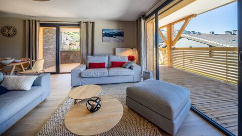 Built in 2016, the residence has a contemporary design, combining modernity and alpine charm. The interiors, designed by a professional decorator, perfectly combine contemporary decoration with a traditional mountain style.
