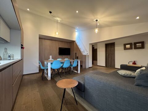 The apartment is situated on the second floor of a chalet-style block in Montriond. It has three bedrooms and two bathrooms (one of which is an ensuite). The main living space is spacious and bright and there is a nice mezzanine area to provide a space for a play area, office or further sleeping accommodation. The entire flat has been fully renovated. The property is sold with a storage cave, a ski locker and a dedicated parking space.