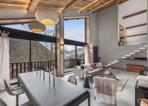 A stylish modern duplex apartment with a total of 240m2 of living area right in the heart of Chatel. This superb duplex is in a charming condominium of only two chalet-style apartments, it was completely renovated in 2019 and provides the perfect blend of contemporary comfort and Alpine charm.