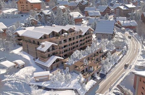 This 5 bedroom off plan luxurious penthouse duplex ski in and out apartment for sale in Meribel with a surface of 225m2 as well as an additional 23m2 under 1.8m, along with huge outdoor terraces of 77m2 will form part of a brand new outstanding 5 star ski in and out development right next to the lifts and piste arrival.