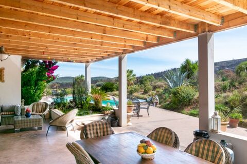 The large covered terrace, a true extension of the living space, is the ideal place to savor the gentle local climate, whether enjoying a meal or simply lounging in the shade.