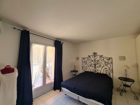 Beautiful wooded plot of 2165 m2, featuring several olive and cypress trees, fully enclosed, south-facing, with stunning views of the hills. It includes a large terrace of nearly 100 m2 with a saltwater pool (10x5m, 1.80m deep, mosaic-tiled), a petanque court, a well, a bathroom/laundry room (shower, WC, sink), and a garage for one car, approximately 20 m2.