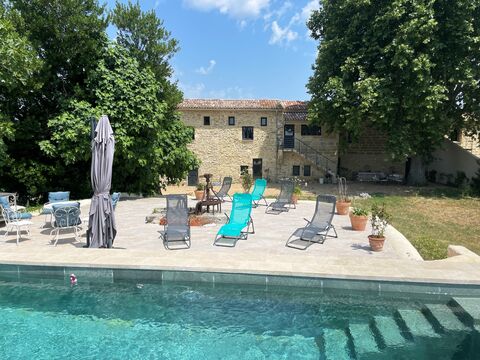 This magnificent, recently renovated stone farmhouse has a large plot of flat, wooded grounds with unobstructed views of the surrounding countryside. It is located just a few minutes from the stunning medieval town centre of Uzes in the beautiful Gard.
