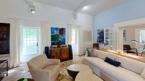 A most charming and characterful fully renovated stone house situated in a peaceful, secluded and elevated location with beautiful surrounding views. Approached via a long private drive through wrought iron double gates leading to the main house: comprising of a large entrance hall, 49m2: Living room with period stone fireplace, modern fitted kitchen, dining room, main bedroom with en-suite dressing room and shower room, 2 further bedrooms and a bathroom/WC all on one level. There is a large attic space which could be converted into additional habitable space if required. The detached pretty guest house incorporates an open plan sitting/dining/kitchen, Shower room, Seperate WC and a 1st floor double bedroom. The ecourie: could house 4 horses or other animals, it has electricity and water. it also has an old bread or pizza oven. The grounds are like a park with numerous trees and shrubs, enclosed walled courtyard, swimming pool and terrace and a Gym. The terrain is 50 000m2. Habitable area 203m2.