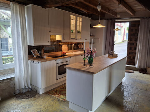 in a lovely rural village set on top of a hill, 10mns drive from Monflanquin, this lovely stone house offers on the ground floor an open plan fitted kitchen / dining-room, separate toilet, a living-room with doors opening onto a balcony that offers panoramic views over the valley; on first floor, a corridor leads to a bathroom and 3 bedrooms including an ensuite with a covered terrace enjoying breathtaking views. in the basement, a large heated room with an old bread oven gives access to a cellar and a very private courtyard with hot tub. The property renovation through the years has preserved old features such as a wooden staircase with wrought iron rail, a "potager" (ancient cooker), fireplaces, a stone sink... A must see exclusively with Agence Eleonor !