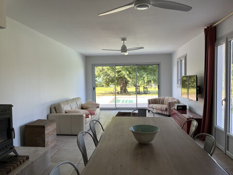 Between tradition and minimalism, it combines charm and simplicity: wood-burner, ceiling fans with summer/winter mode, double-glazed windows, and wooden shutters guarantee economical comfort. Four bedrooms, with their own access to the garden (one with a private bathroom), a bathroom with a walk-in shower, a separate toilet, and a laundry room. The 51m2 living room with open plan kitchen opens onto two terraces and the 8x4m swimming pool (heated, salt-water, with a submerged cover). A great place to spend quality time!