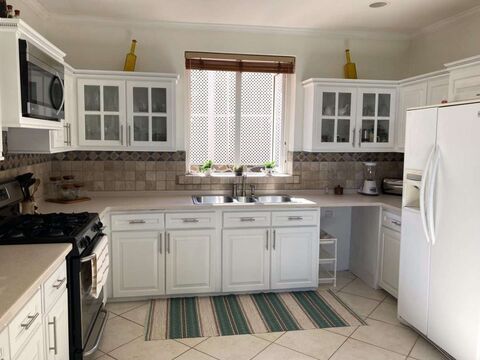 Immediately adjacent is a well-equipped, recently updated kitchen; and laundry room equipped with washer and drier.