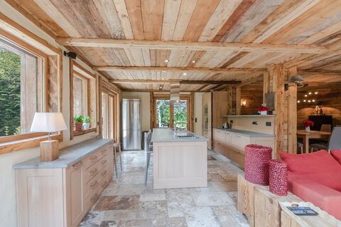 Located in the Les Glieres area of the Les Tines area, just a stone's throw from the golf course and the Flegere lift, this stunning 4 bedroom chalet spans 256 m2 (305m2 total) over three levels. Built in 2005 and west facing, the property enjoys abundant natural light and breathtaking views of the Mont Blanc massif and the Drus, all set within a beautifully landscaped 1700 m2 garden.The ground floor welcomes you with a spacious entrance that opens into an impressive 80 m2 living area, complete with an open plan fitted kitchen and a cosy fireplace, creating a warm and inviting atmosphere. This level also offers a versatile space with a dormitory bedroom and an office, ideal for accommodating guests or working from home, while the double garage provides convenient internal access. Upstairs, the chalet features a thoughtfully designed sleeping area comprising two double bedrooms, one of which benefits from an en-suite bathroom and a generous dressing room, a single bedroom, a family bathroom, and a charming mezzanine overlooking the living space, adding character and functionality.For those seeking relaxation, the basement level is dedicated to wellness and leisure. A beautifully appointed spa area includes a sauna and Japanese bath, providing a serene escape after a day on the slopes, while a spacious wine cellar offers the perfect setting to store and savour fine vintages. Ample storage rooms ensure the practical needs of mountain living are fully catered for.Combining refined interiors with exceptional outdoor spaces, this remarkable chalet is a rare opportunity to enjoy luxury, comfort, and panoramic mountain views in one of Chamonix's most sought-after locations. For more information, please contact us.
